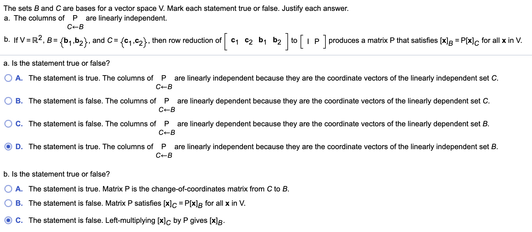 Solved The Sets B And C Are Bases For A Vector Space V Mark Chegg Com